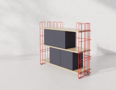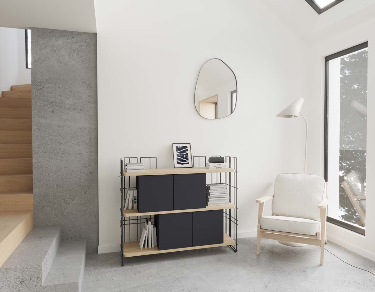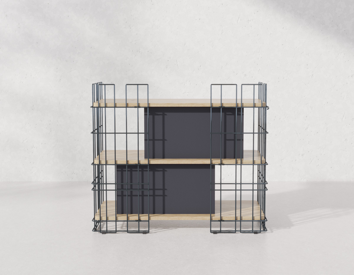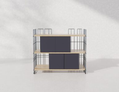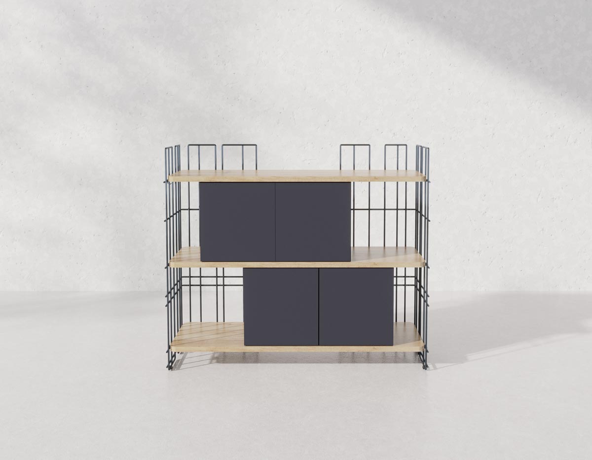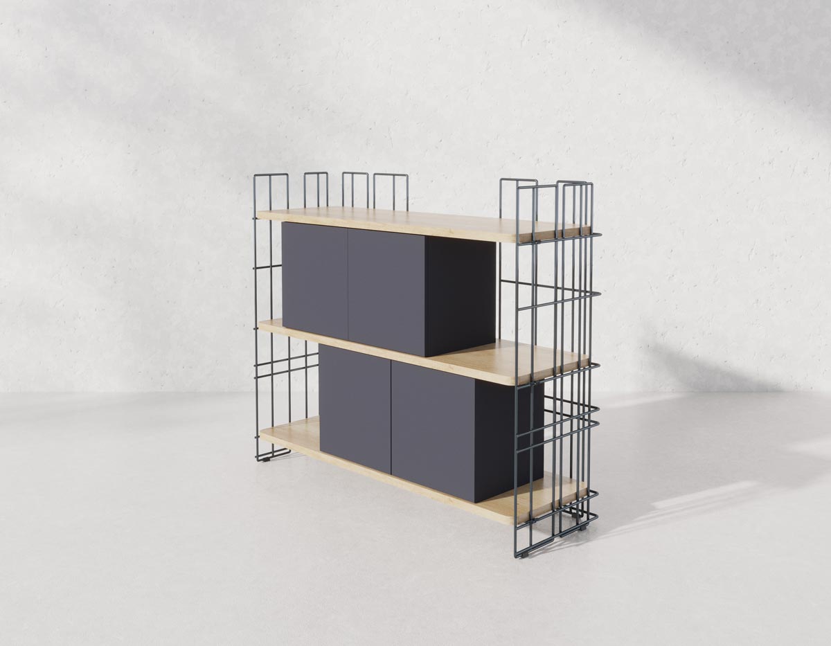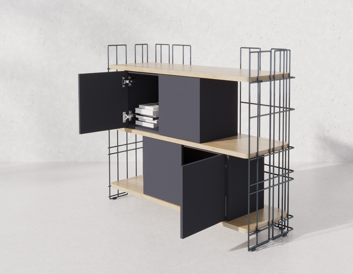 – Plateaux et blocs en mélaminé finition chêne Nebraska et noir mat épaisseur 25mm,